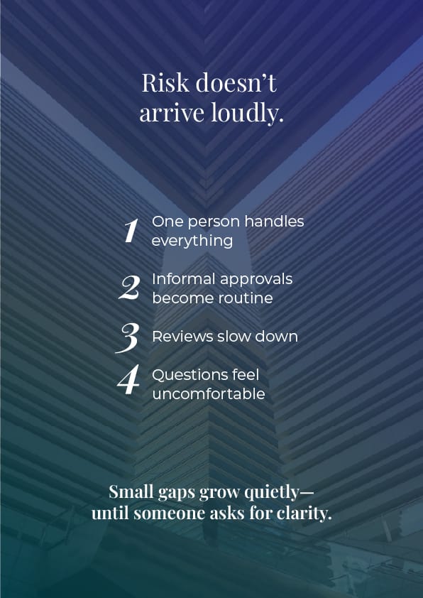 Internal control gaps usually grow from practical decisions, not negligence.