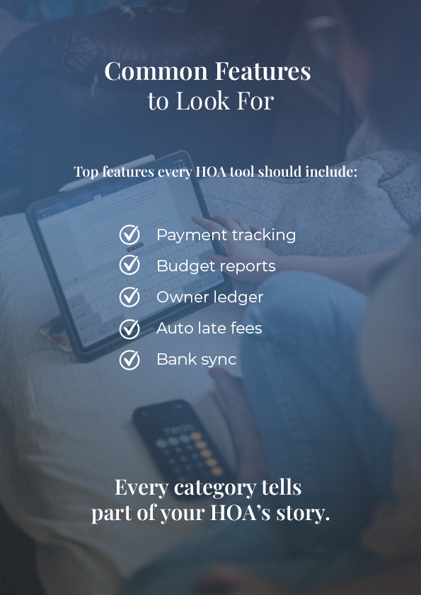 HOA software tracks dues by unit or address, not just by customer name. It runs on a schedule, applying late fees if needed. It also separates reserve funds from day-to-day accounts, which helps boards avoid costly mistakes.